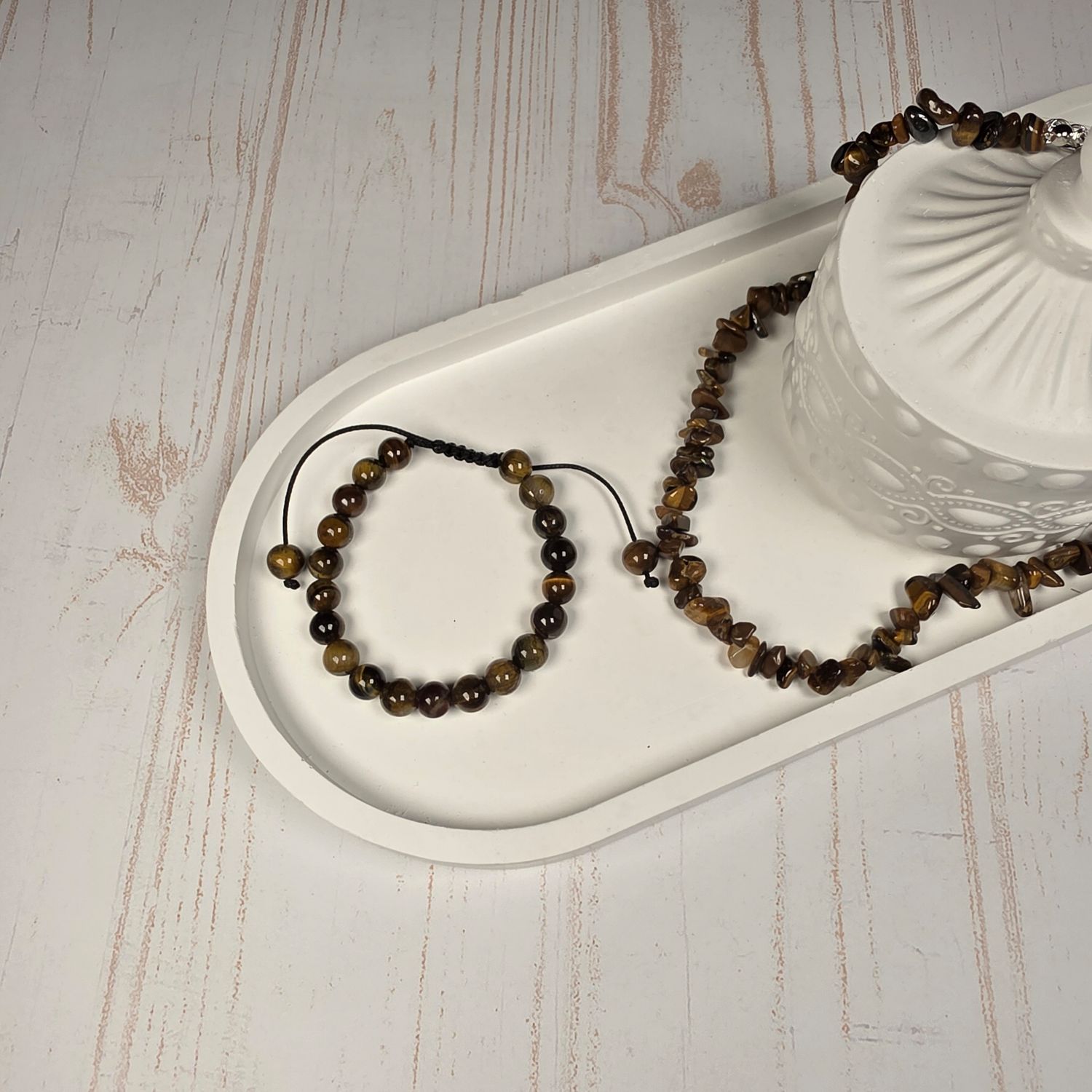 Precio regular $1.990,00Precio en oferta $1.990,00 Precio regular $2.280,00Precio unitario / porEl pack incluye un collar de escalla de ojo de tigre y una pulsera ajustable de 8mm. Conocida como la "Piedra de la Libertad", esta gema...