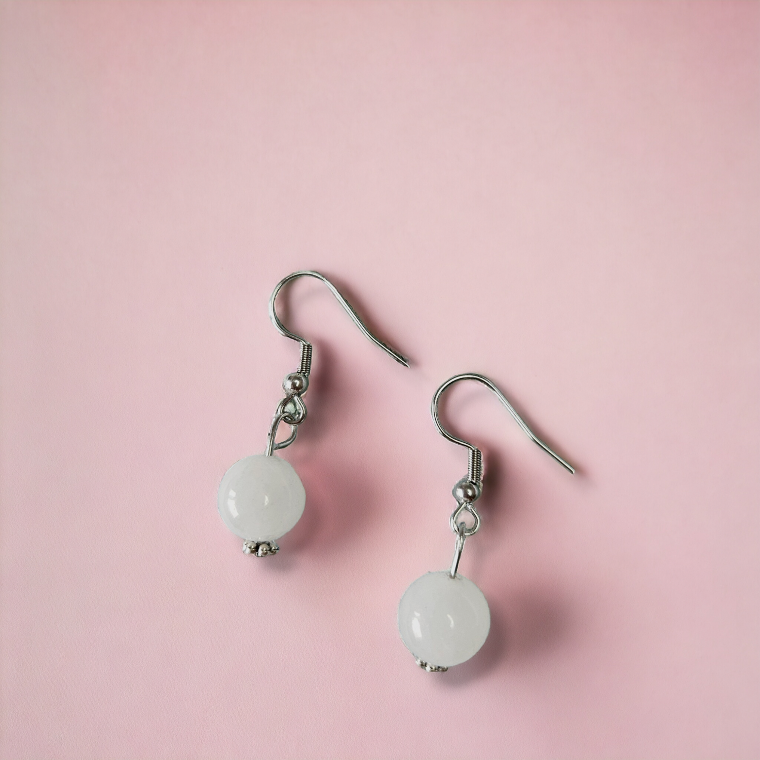 Caravanas cuarzo blanco de 10mm y acero quirúrgico.