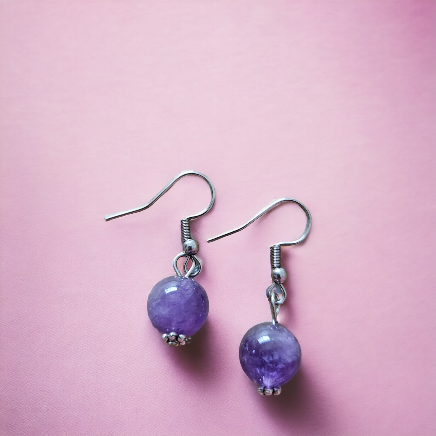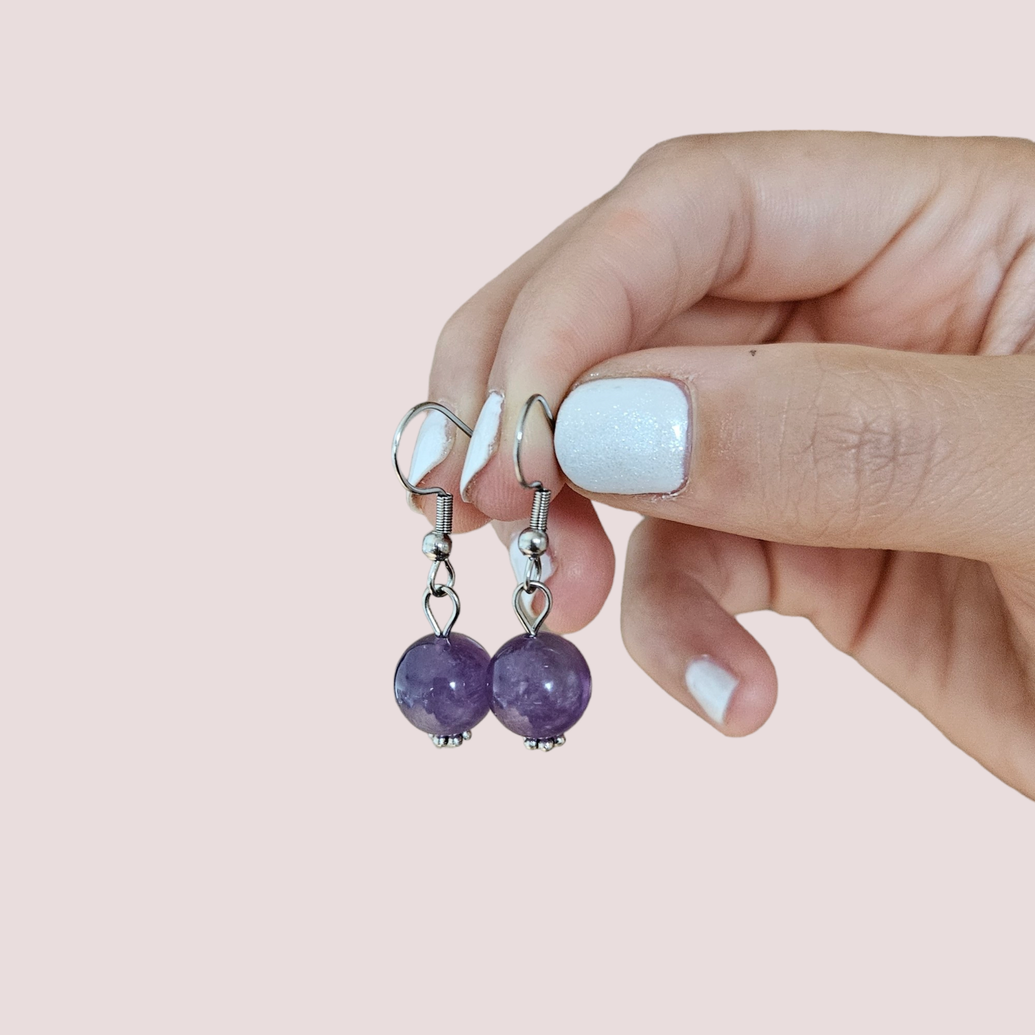 Caravanas de acero quirúrgico con piedra de amatista de 10mm