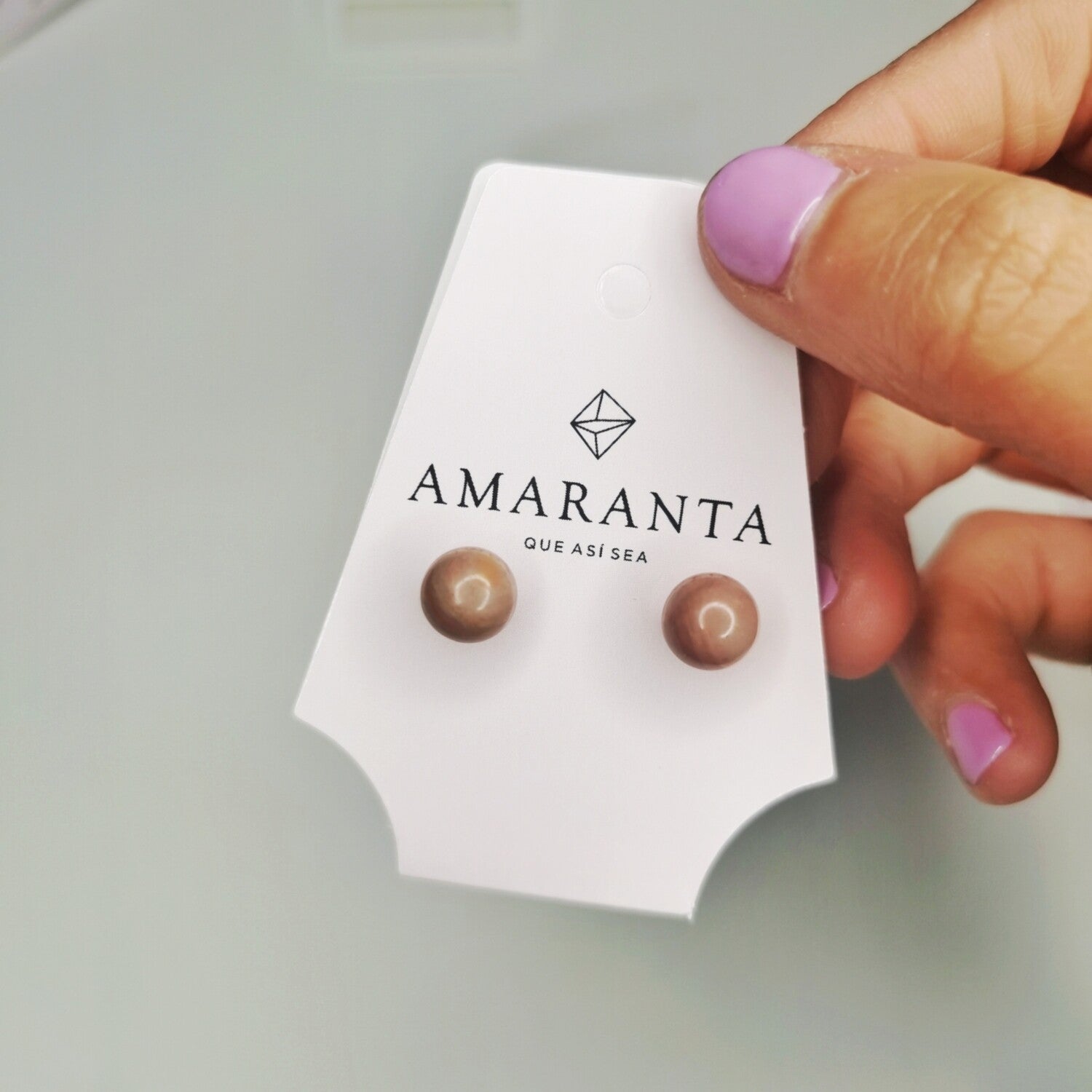 💫Producto: Caravanas de rodocrosita de 8mm de acero quirúrgico