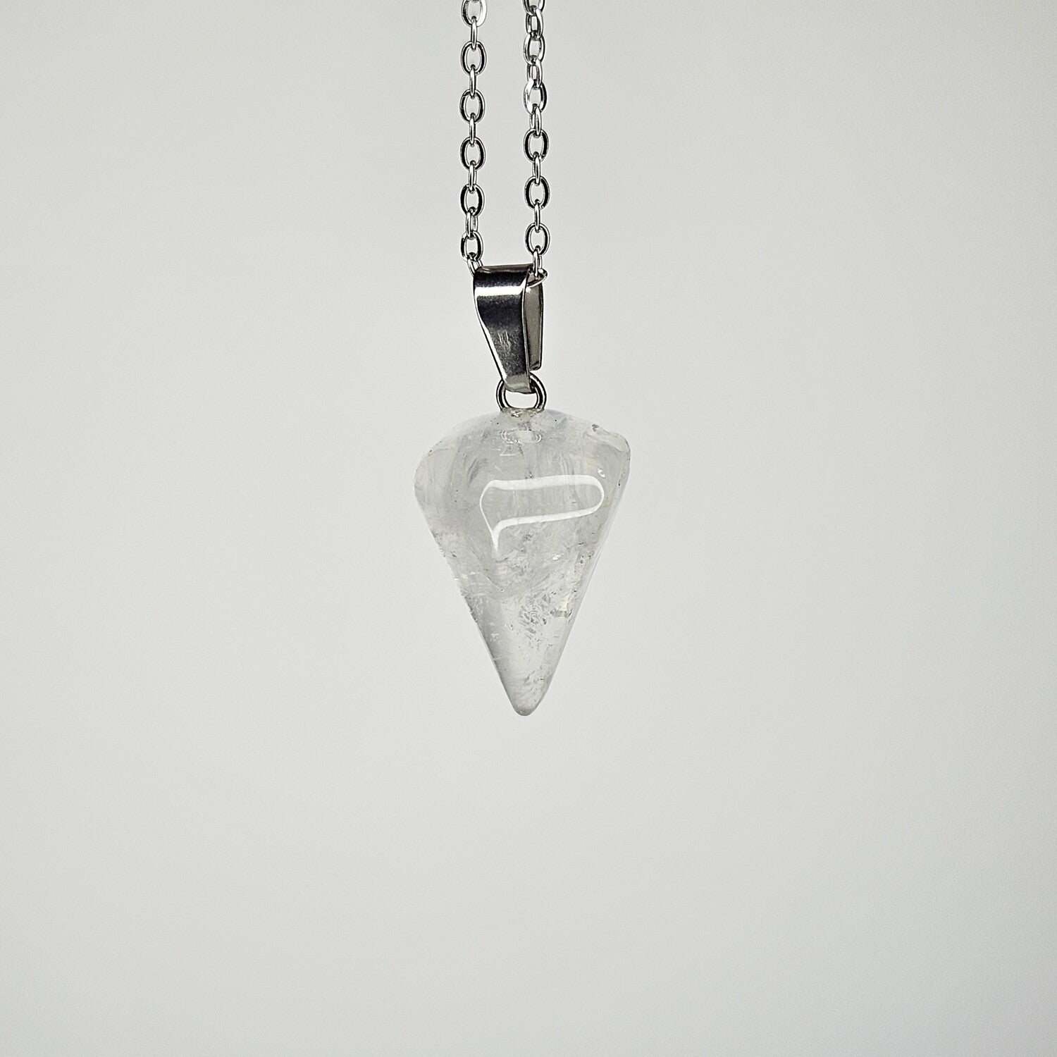 Dije de péndulo de cuarzo cristal con cadena de acero quirúrgico de 45 cms.