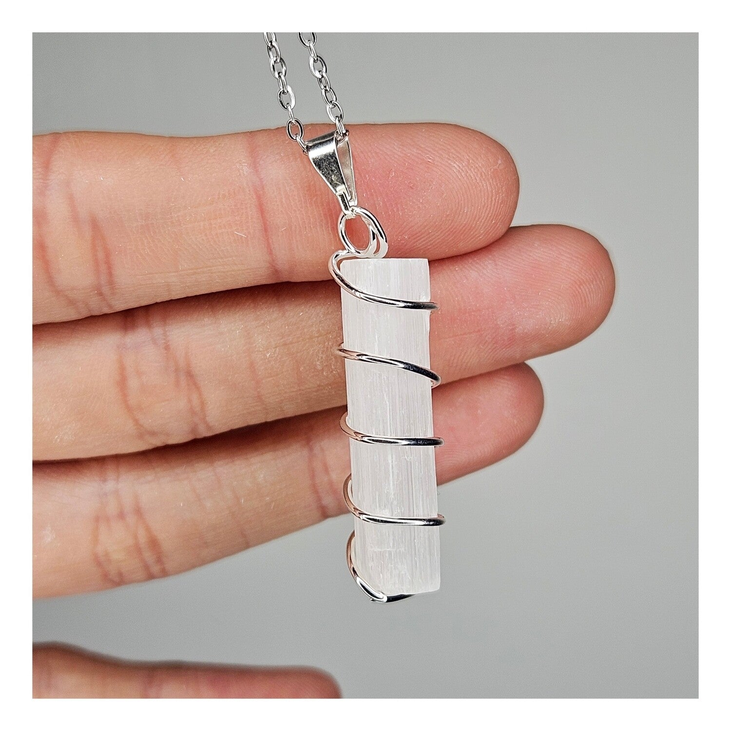 Dije de Selenita con cadena de acero quirúrgico de 45cm.