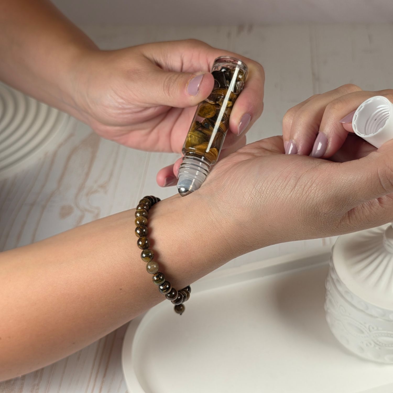 Despierta tu fuerza interior y avanza con determinación con este kit diseñado para impulsarte hacia tus metas. El roll-on con aroma a menta refresca la mente, revitaliza los sentidos y te llena de energía positiva para enfrentar cualquier desafío. La pulsera de ojo de tigre, conocida como la “Piedra de la Libertad”, te ayuda a superar miedos, tomar decisiones con claridad y mantener el equilibrio en momentos de incertidumbre.