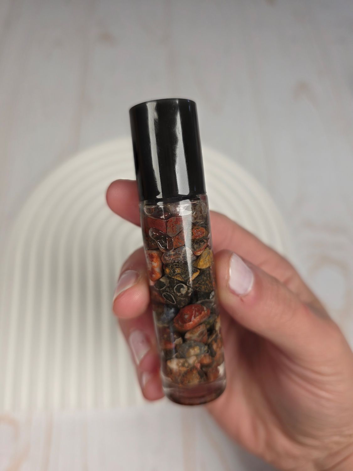 Tu aliado natural para concentrarte, crear y avanzar con claridad. Este roll-on combina el aroma vibrante de los cítricos, que estimulan la mente y elevan el ánimo, con la energía de la leopardita, piedra de enfoque, creatividad y verdad interior.