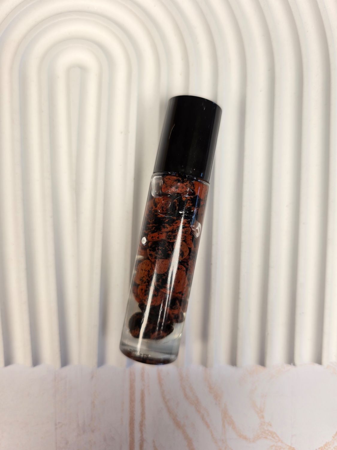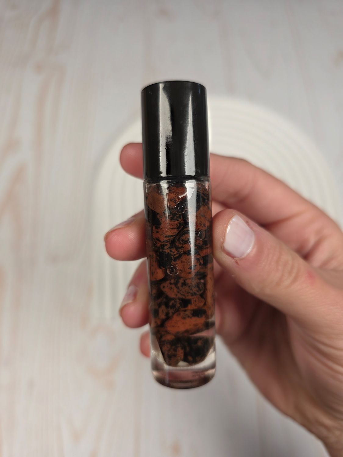 Un ritual profundo para volver a tu centro. Este roll-on combina el aroma sagrado del incienso, conocido por elevar la conciencia y abrir espacios de introspección, con fragmentos de obsidiana caoba, piedra de conexión con la tierra y transformación interior.